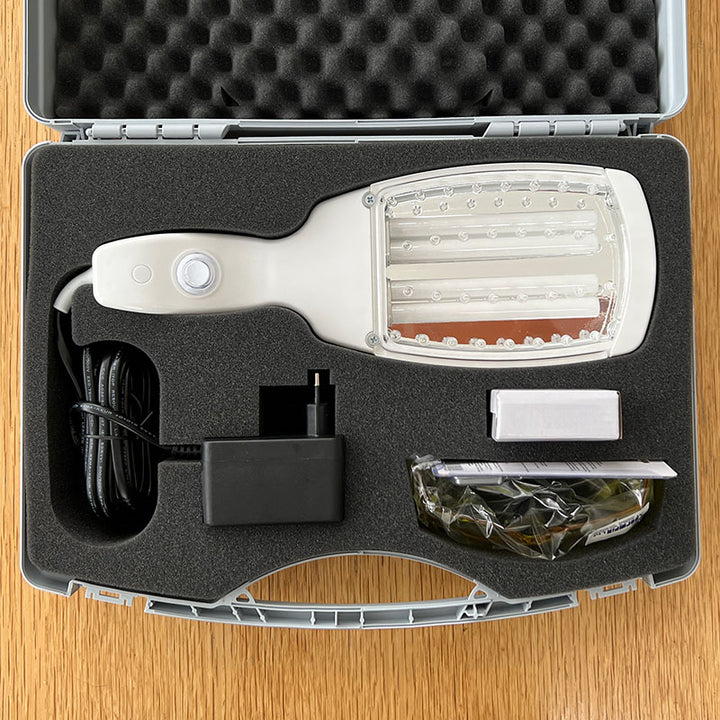 The Dermfix 2000SX UVB handheld lamp is a unique UVB home phototherapy device providing treatment of Psoriasis, Vitiligo, and Atopic Eczema anywhere on the body. The unit is fitted with specially developed narrowband UVB 311nm tubes as standard.